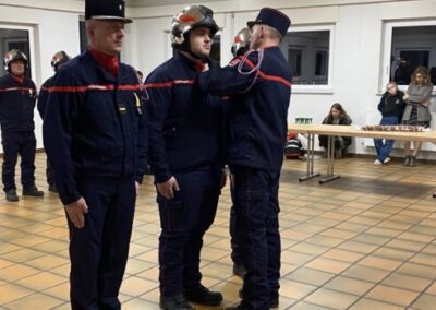Une médaille d’argent a été remise à l’ adjudant Gatien FEINDRY récompensant vingt ans de service et une médaille de bronze pour dix ans de service a été remise au Caporal-Chef Simon COUDERC. Le sapeur de 2e classe Joffrey BACHER a terminé avec succès sa période probatoire lui permettant ainsi de devenir Sapeur de 1ère classe. Le Président du SIVU, Alain FURSTENBERGER a remercié chaleureusement les pompiers pour leur engagement et a souhaité que le bon fonctionnement du corps perdure.